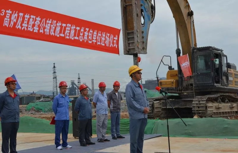 2019年9月17日上午10時,山鋼股份萊蕪分公司新舊動能轉換項目新建2×3800立方米高爐及其配套公輔設施工程施工總承包單位進場儀式在現場舉行。