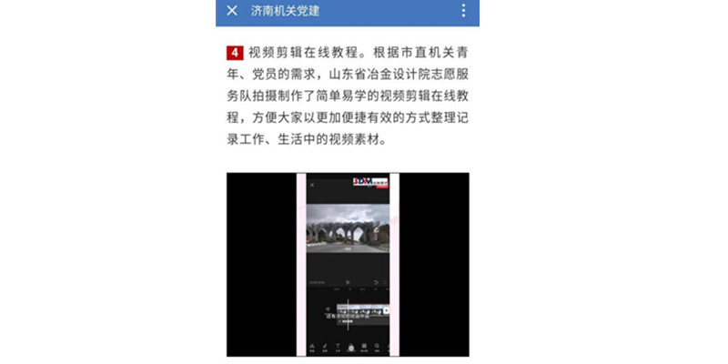 4月1日,為貫徹市直機(jī)關(guān)青年志愿“區(qū)塊鏈”項(xiàng)目部署,公司團(tuán)委積極組建青年志愿服務(wù)隊(duì),結(jié)合市直機(jī)關(guān)廣大黨員、青年掌握簡易視頻剪輯的需要,第三團(tuán)支部、第六團(tuán)支部團(tuán)員青年迅速行動(dòng)制作了電腦端視頻剪輯教程和手機(jī)端視頻剪輯教程,該志愿服務(wù)項(xiàng)目得到了市直機(jī)關(guān)團(tuán)工委充分認(rèn)可,并在濟(jì)南機(jī)關(guān)黨建平臺(tái)予以推廣。