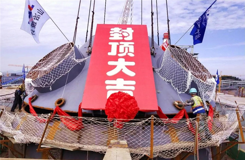 2020年8月25日,由山冶設計總承包的山鋼股份萊蕪分公司1#3800m3高爐工程舉行爐殼封頂儀式。山鋼股份萊蕪分公司新舊動能轉換項目工程指揮部副總指揮李綱、副經理田慶元,煉鐵廠經理、高爐工程項目經理部經理張明,新舊動能轉換項目工程指揮部高爐工程項目經理部常務副經理賈友劍及施工、監理等相關單位領導出席了儀式,山東省冶金設計院股份有限公司黨委書記谷卓奇代表總承包單位發表講話。