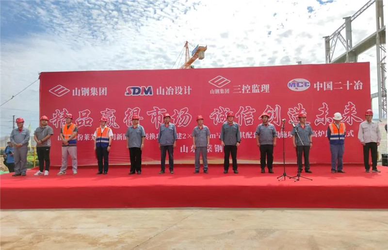 山鋼股份萊蕪分公司兩座3800 m3高爐工程,是依據山鋼集團“率先突破”“做強萊鋼”的總體戰略要求,結合萊蕪分公司的現狀及新舊動能轉換的經濟形勢,以智能制造、綠色發展為突破,為推動技術進步、產品升級、成本優化實施的萊蕪分公司升級改造項目,對萊蕪分公司以及濟南市新舊動能轉換工作的推進具有重要意義。