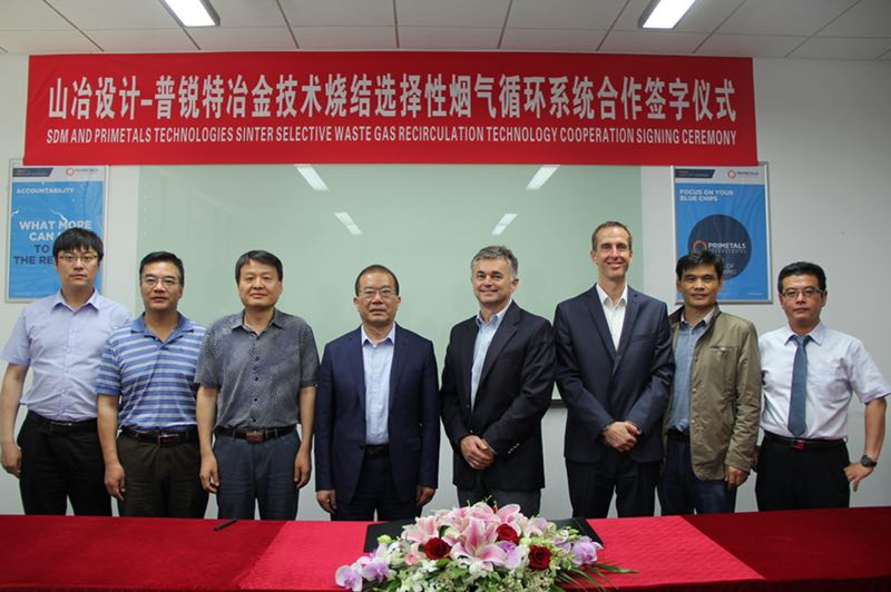 2018年5月24日,在普銳特冶金技術(中國)有限公司總部上海,公司董事長魏新民和普銳特冶金中國區CFO Stefan先生簽訂了燒結機選擇性煙氣循環(SWGR)技術合作協議,公司副總經理宋志順、設計管理部總師孫榮生、市場部部長趙圣存和普銳特冶金節能環保部總經理Peter、營銷總監梁君、山東大區經理孫磊一同參加了本次合作協議的簽約儀式。此協議的簽訂標志著公司開始與普銳特冶金在中國國內乃至印度、伊朗共同推廣燒結機煙氣循環技術。