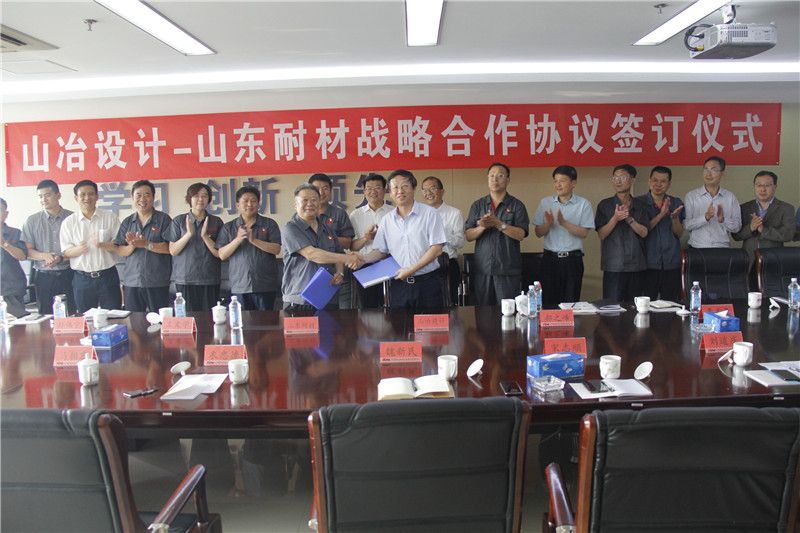 2019年5月16日,山冶設(shè)計與山東耐材戰(zhàn)略合作協(xié)議在濟南山冶設(shè)計辦公樓簽訂。山鋼集團黨委委員、副總經(jīng)理王向東,戰(zhàn)略規(guī)劃部副部長郝之峰,山冶設(shè)計董事長魏新民,總經(jīng)理衣忠德,副總經(jīng)理宋志順,山東耐材集團黨委書記、董事長車連房,黨委副書記、總經(jīng)理李文亮,副總經(jīng)理王文學(xué)、張延敏及相關(guān)人員出席了簽訂儀式。