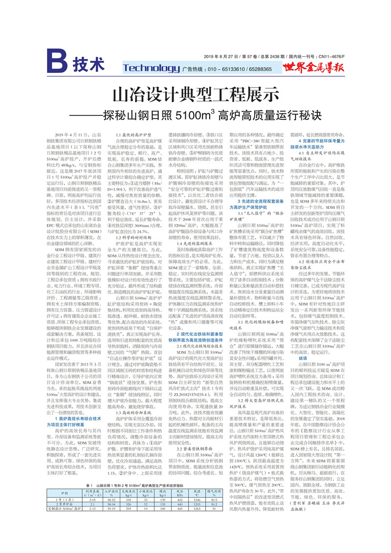山冶設計典型工程展示——探秘山鋼日照 5100m3 高爐高質(zhì)量運行秘訣